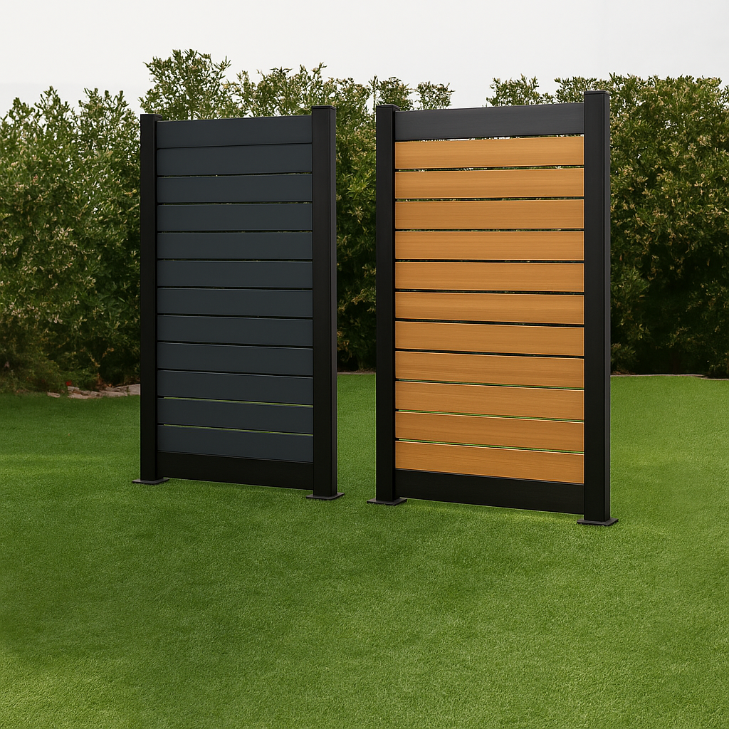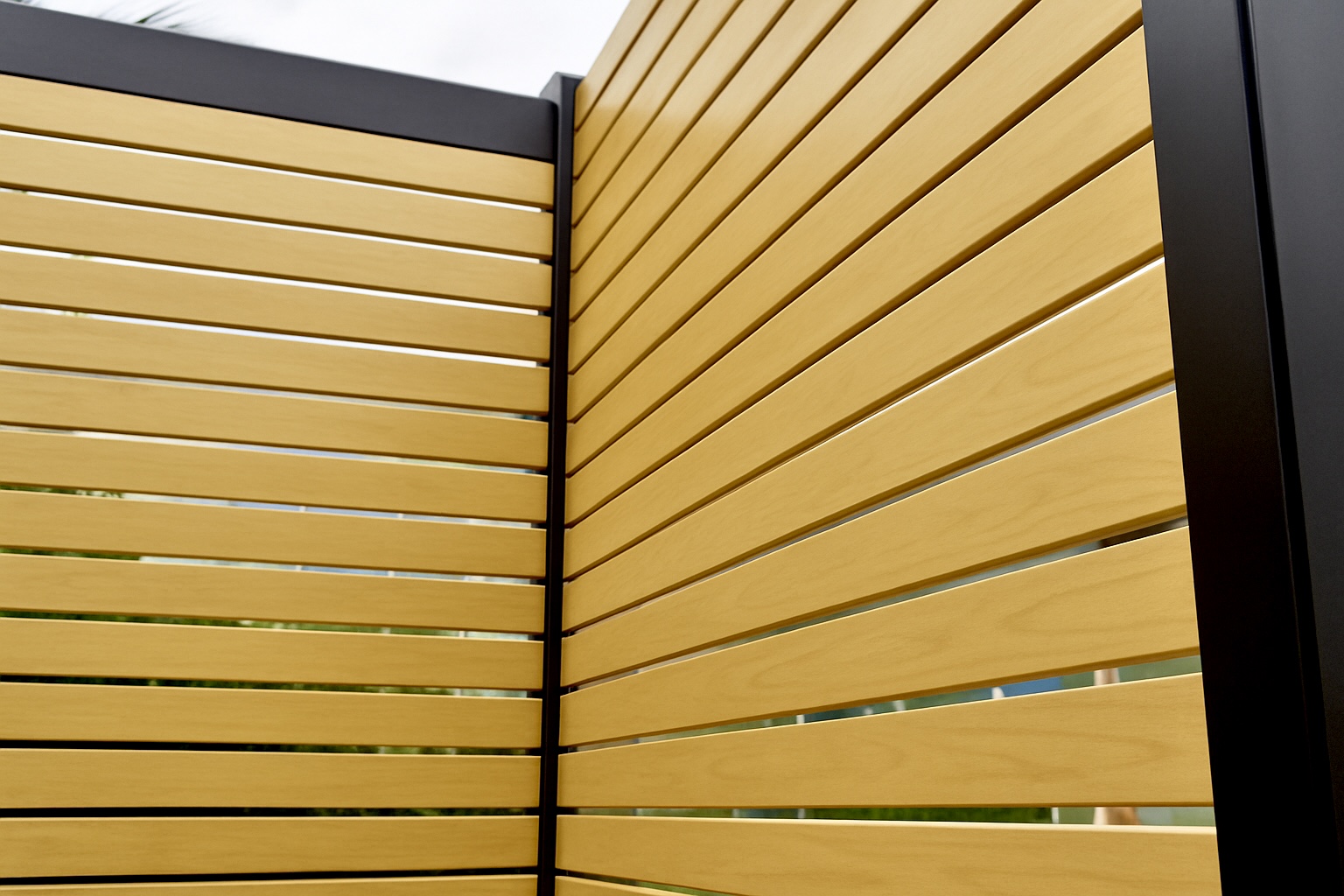 Elevate your backyard, patio or pool area with aluminum privacy screens. Perfect for blocking unwanted views and sun to adding a decorative element to your fencing with sleek horizontal or vertical slats.