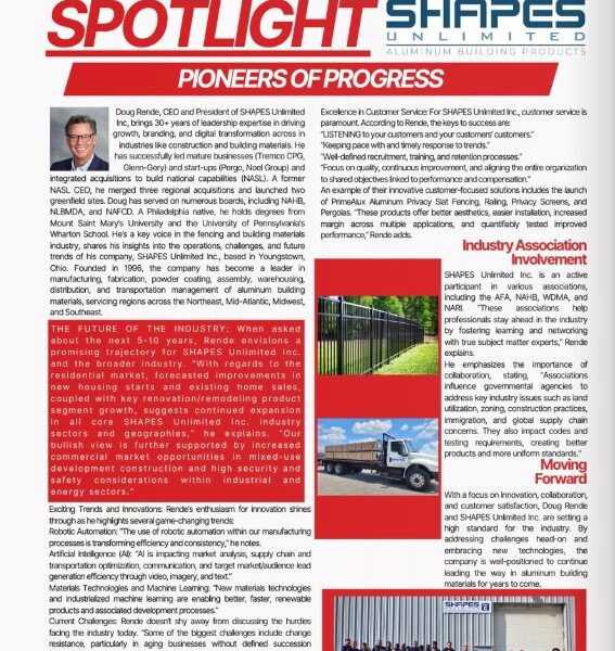 SHAPES is featured in January’s issue of The Fence Magazine. Doug Rende, CEO and President discusses our commitment to innovation, like PrimeAlux Aluminum Slat Fence and the future of the fencing industry. Dive in to the article to learn more about our story, our values and how we’re helping customers across the aluminum fence industry.