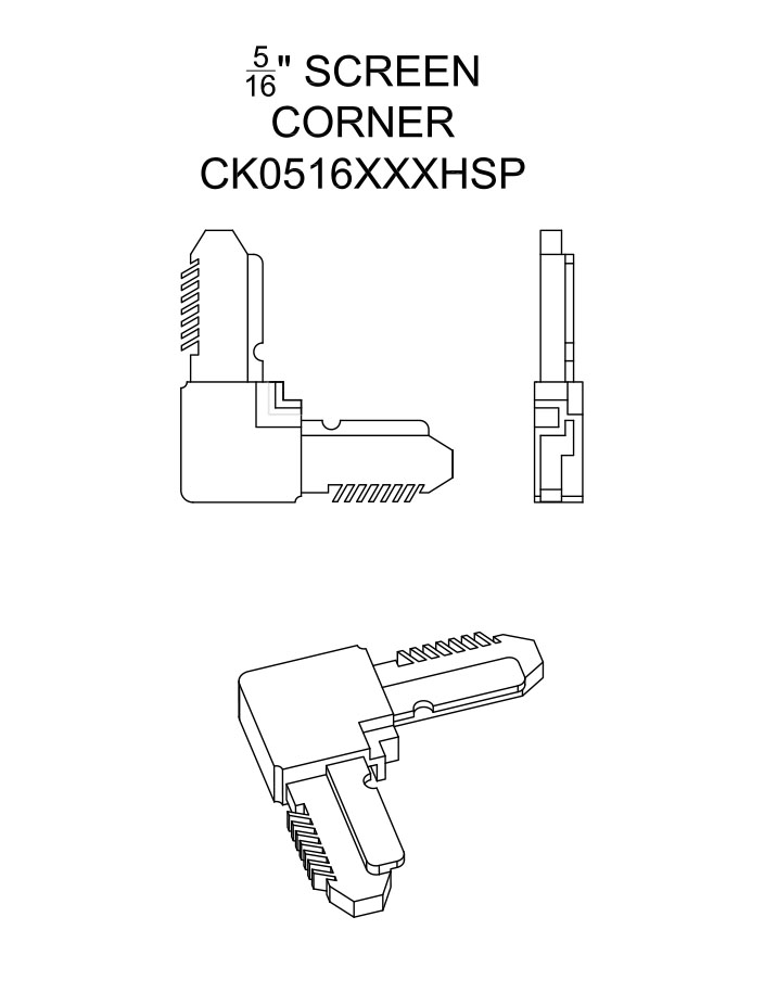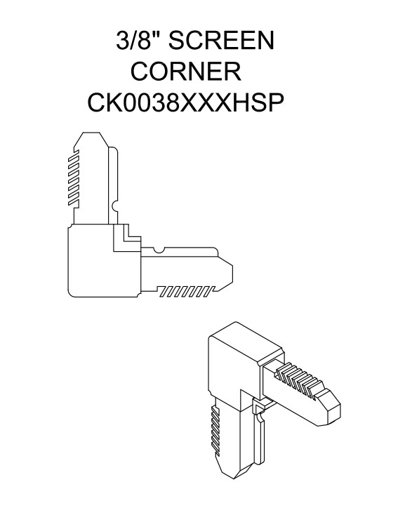 Plain (Common) rails, Lift rails, Stop rails, and Lock rails available in many different styles and stocked colors.  Matching hardware (Internal or External nylon corners, zinc corners (where available), leaf springs and pull tabs) shown below each screen rail for convenience.